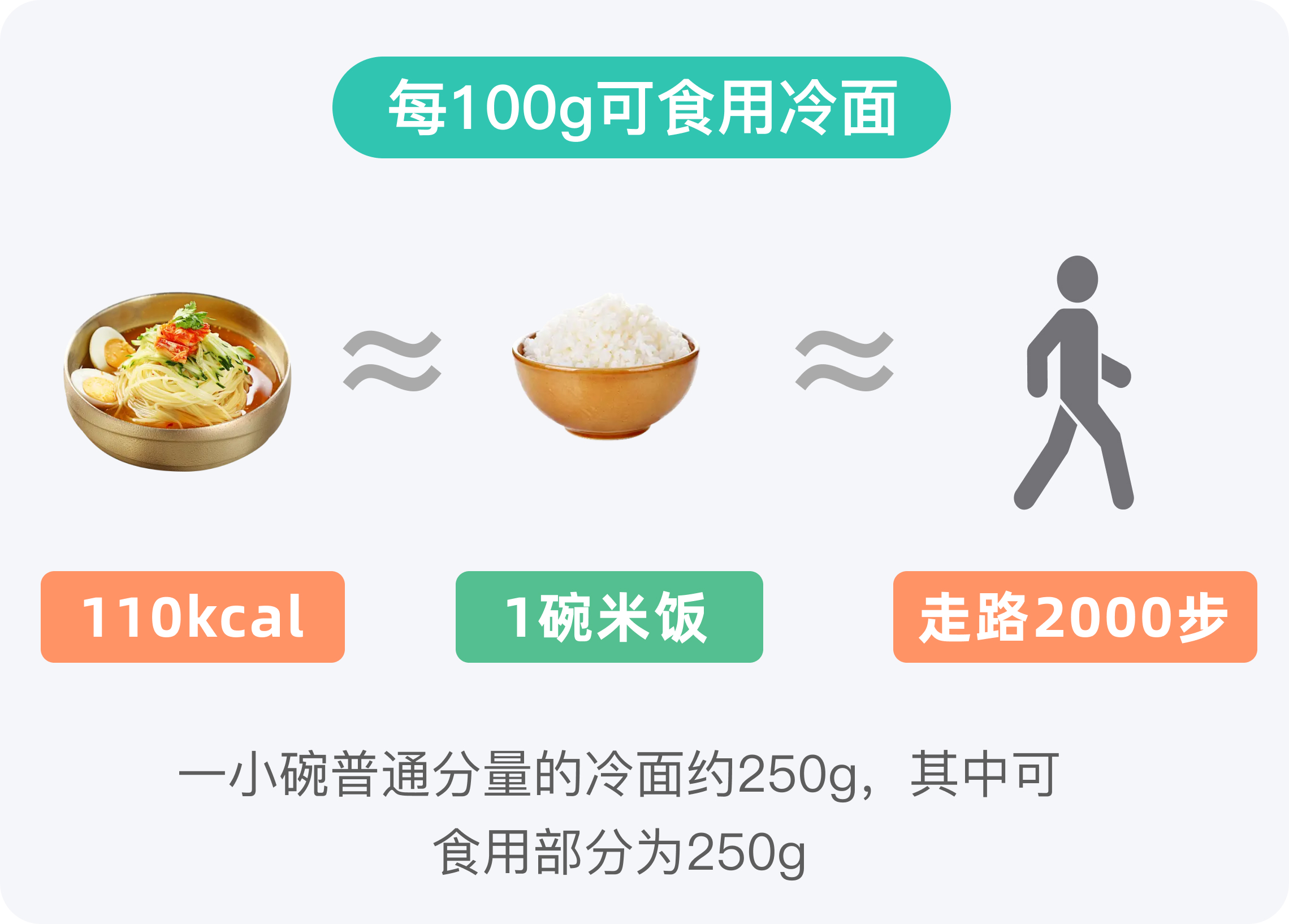 冷面属于特色小吃,热量不算高,每100g冷面的热量约为110kcal,属于中等热量食物。冷面的热量主要来源于碳水化合物,其面条多由荞麦面、小麦面等制成,此外,调配冷面的汤汁中若含有少量糖分也会贡献一定热量。冷面适合大多数人群食用,每周食用2-3次较为合适,每次食用量可根据个人食欲和营养需求,一般一小碗即可,约250g。