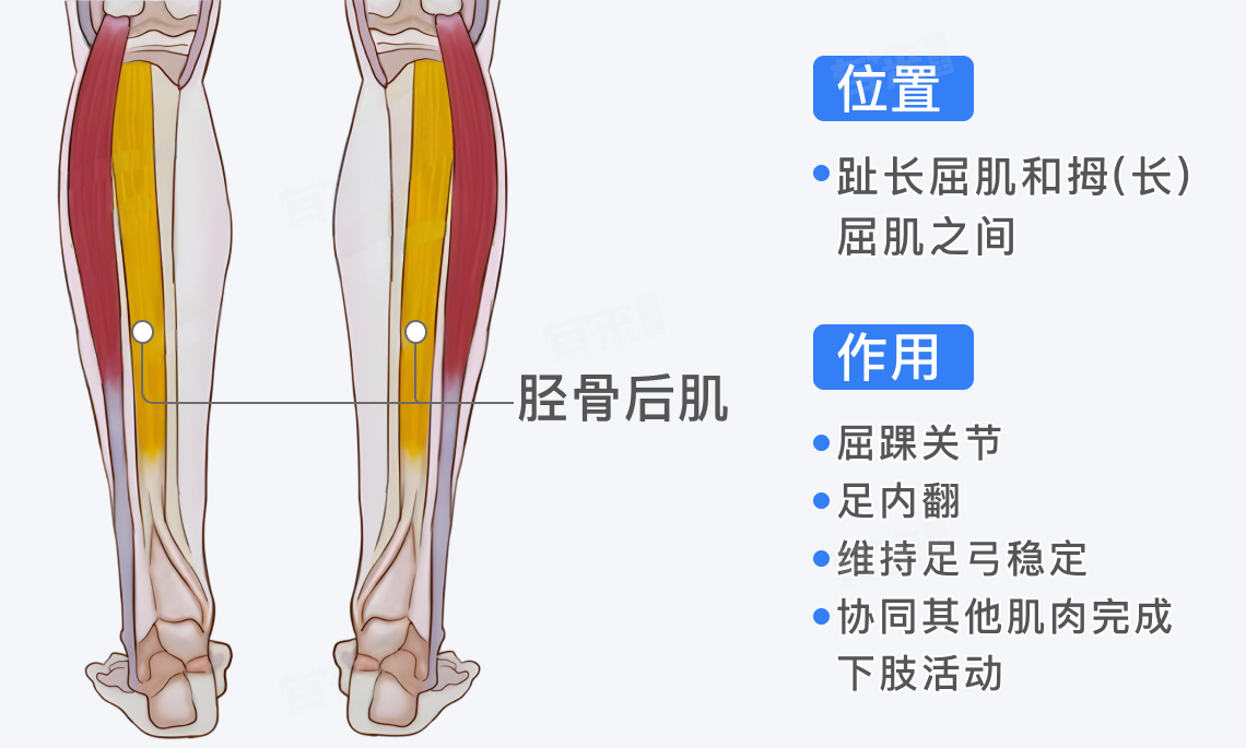 3、维持足弓稳定:当肌肉张力正常时,胫骨后肌能够维持足弓的高度和形态,从而确保站立的平衡性和稳定性。