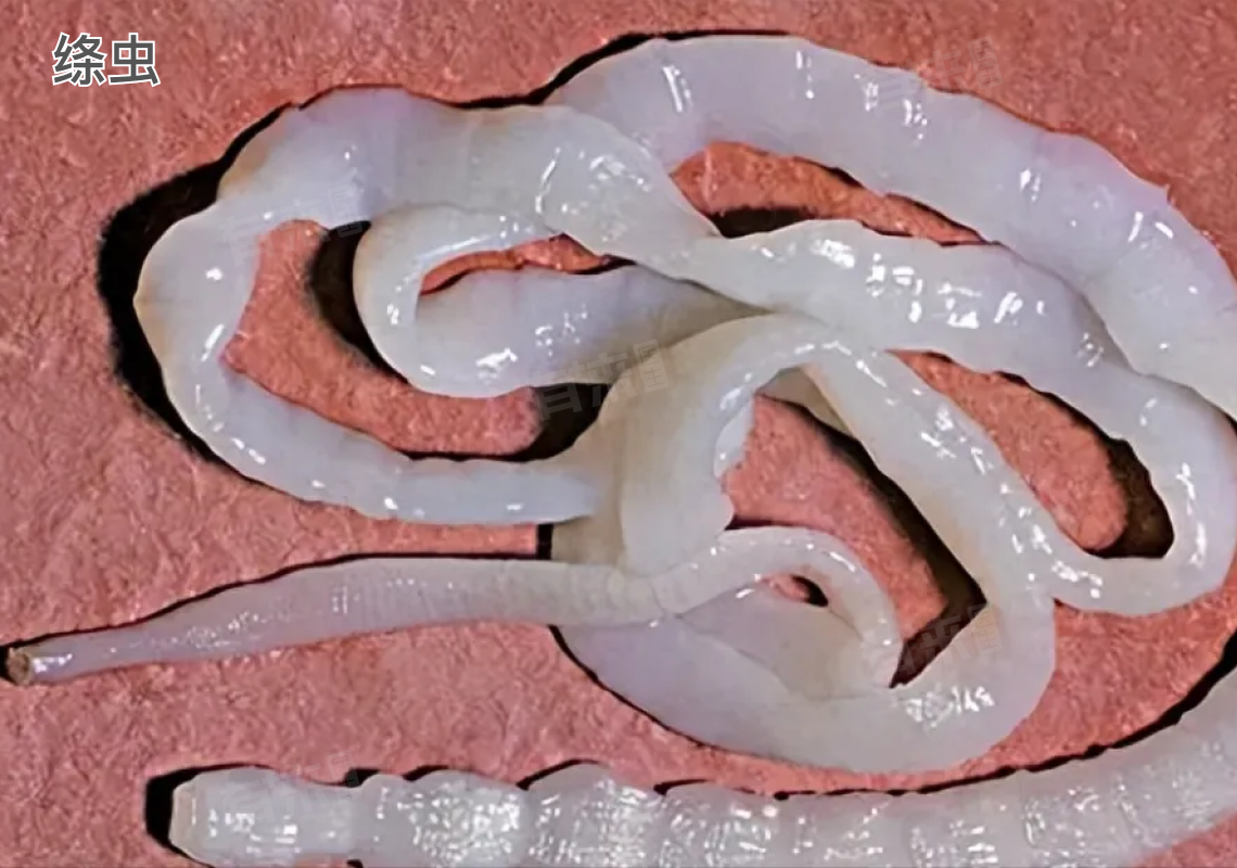 绦虫整个虫体可分为头节、颈部和节片三部分,呈扁平的带状,像一条长长的白色或乳白色的带子,长度差异较大,有的种类仅有几厘米长,而有的大型绦虫可长达数米甚至数十米。