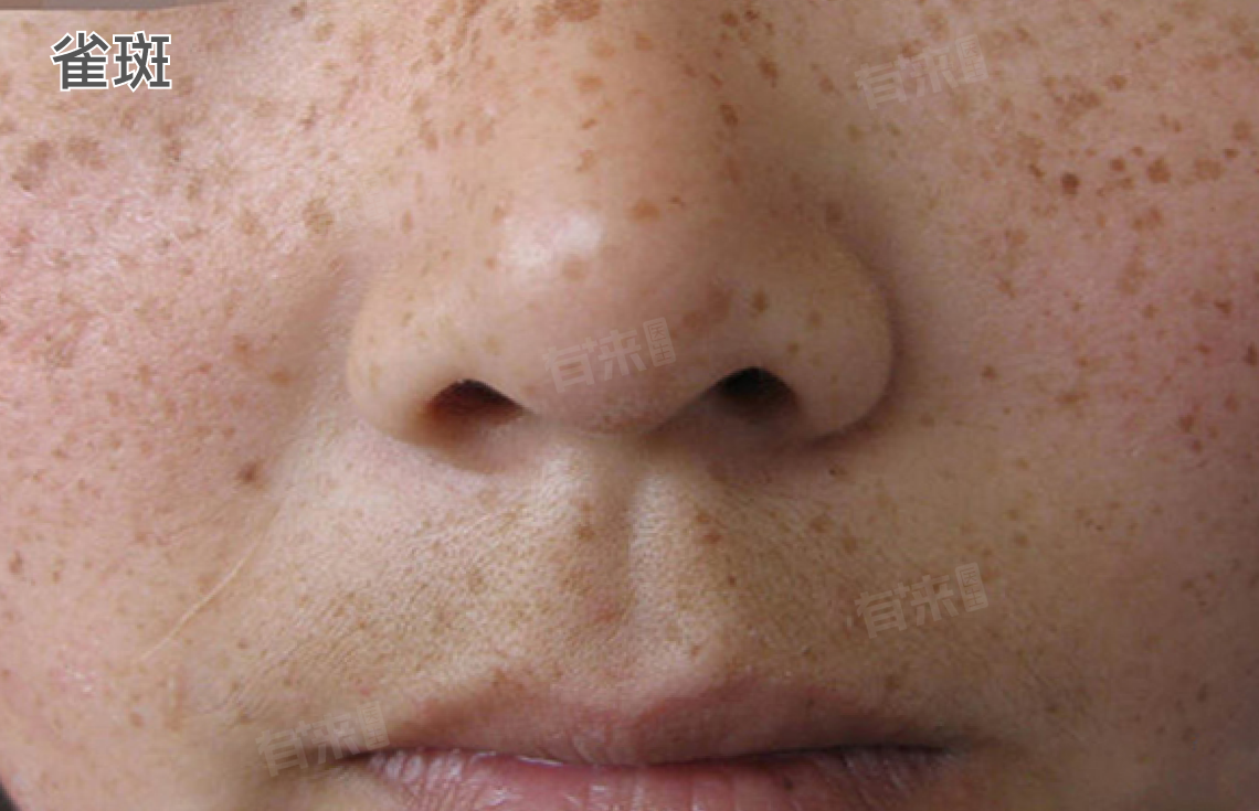 雀斑主要分布在面部,尤其是鼻梁、两颊、前额及眼周等暴露部位。随着雀斑数量的增多,面部可能呈现密集的斑点状分布,影响面部美观。值得注意的是,雀斑的分布通常具有对称性,即左右两侧面部的雀斑数量和分布相似。