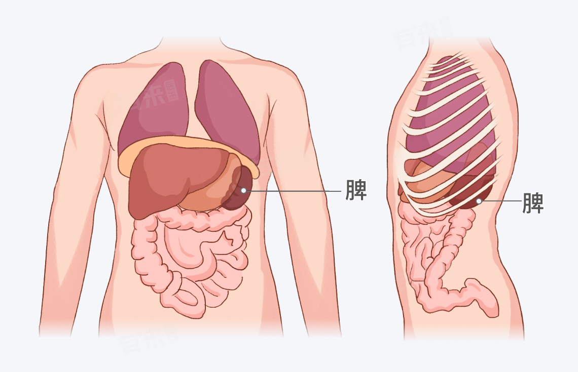 脾脏是人体中最大的淋巴器官,位于人体左中腹,长轴与第10肋一致,具有造血、存血、滤血等功能。