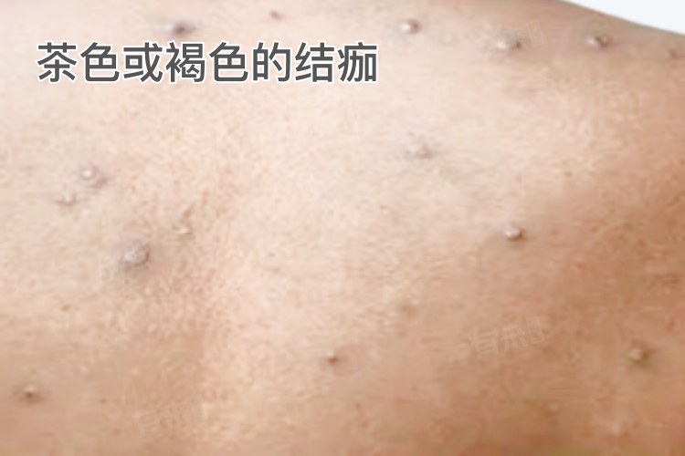 4、结痂:在脓疱期后,水疱会逐渐干燥并结痂,结痂是指水疱或脓疱上形成厚厚的干燥皮层,这些结痂通常是茶色或褐色的,最终会脱落。
