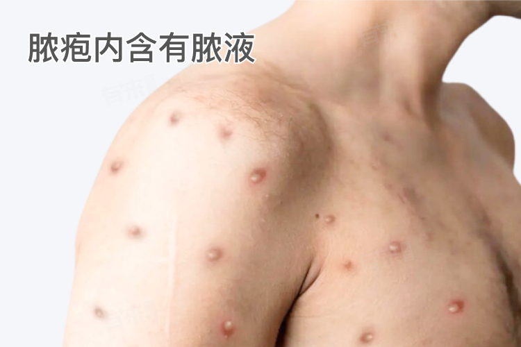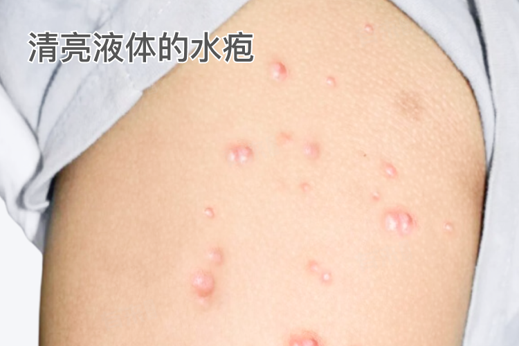 2、水疱:随着病情的进一步发展,丘疹可能逐渐演变为水疱,水疱内含有清亮的液体,可能伴随瘙痒和疼痛感。