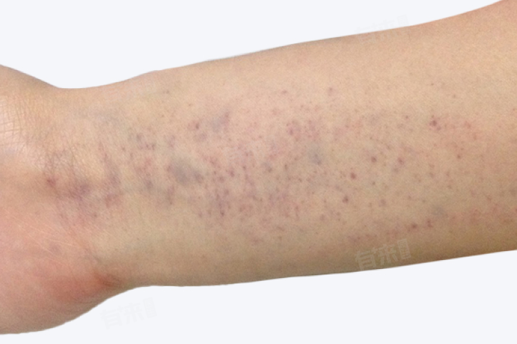 患者可能会在手臂、腿部、面部、躯干、臀部及踝关节周围等部位出现大小不一的紫红色出血点,通常是突然出现,按压时不褪色,形状也不规则,可能是圆形、椭圆形或不规则形。这些出血点或通常不会消退或变白,而是保持一段时间后逐渐消退。