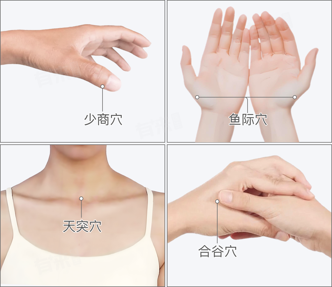 目前并没有“喉咙痛按哪个部位可以立马见效 ”这一说法,但是可以按摩少商穴、鱼际穴、天突穴、合谷穴等穴位,以缓解症状。另外,还可以辅助饮食调理、药物治疗、物理治疗等方法来一起缓解。