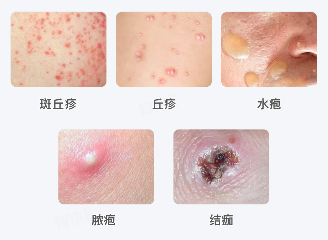 1、斑丘疹阶段:猴痘最初的皮肤表现通常是斑丘疹。这些皮疹开始为扁平状、红色,直径约2-5毫米,可能单个出现,也可能成簇出现。皮疹一般先出现在面部,尤其是脸颊、额头等部位,还有手掌和脚掌,此时皮疹的外观和普通的丘疹性皮肤病有些相似,只是在分布上更倾向于特定部位。