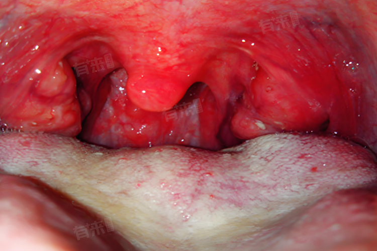 患者会感觉喉咙里有堵胀感,这是因为扁桃体肿大后,占据了咽喉部的空间。即使没有吞咽动作,也会一直有这种异物感,清嗓可以暂时缓解,但异物感很快又会出现。