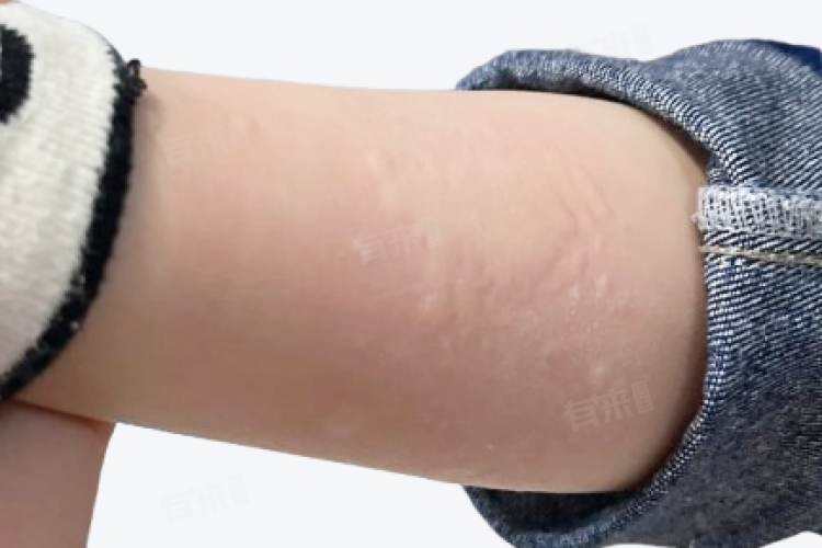可能会有红色丘疹,通常出现在脸部,如脸颊、下巴,以及颈部、耳部、四肢的伸侧等部位,触感粗糙,颜色鲜红,孩子可能会因为瘙痒而不断搔抓。