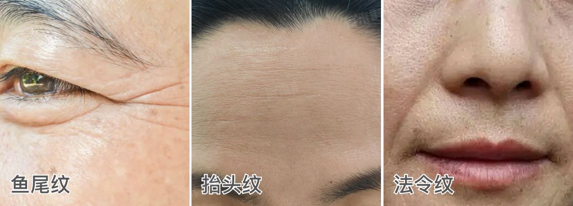 这使得皮肤的支撑结构受到破坏,皱纹逐渐加深,如眼周的鱼尾纹、额头的抬头纹、嘴角的法令纹等。
