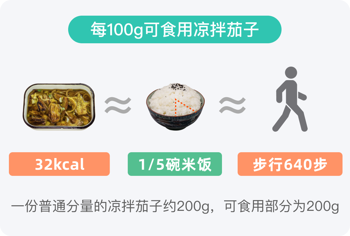 每100g凉拌茄子的热量仅为32kcal,一份凉拌茄子越200g,热量为64kcal,相当于3/8碗米饭的热量。这样的热量贡献在成人的一餐中相对较小,可以作为健康饮食的一部分,帮助控制总热量摄入。一般情况下,减肥人士可以放心地将凉拌茄子纳入日常饮食中。