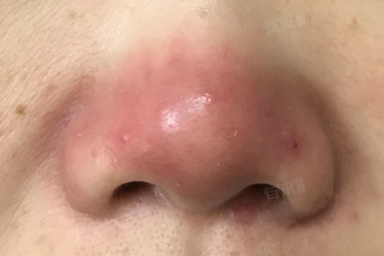 2、鼻部改变:在病情较为严重的情况下,鼻部皮肤可能会增厚、变大,形成鼻赘,影响面部美观。