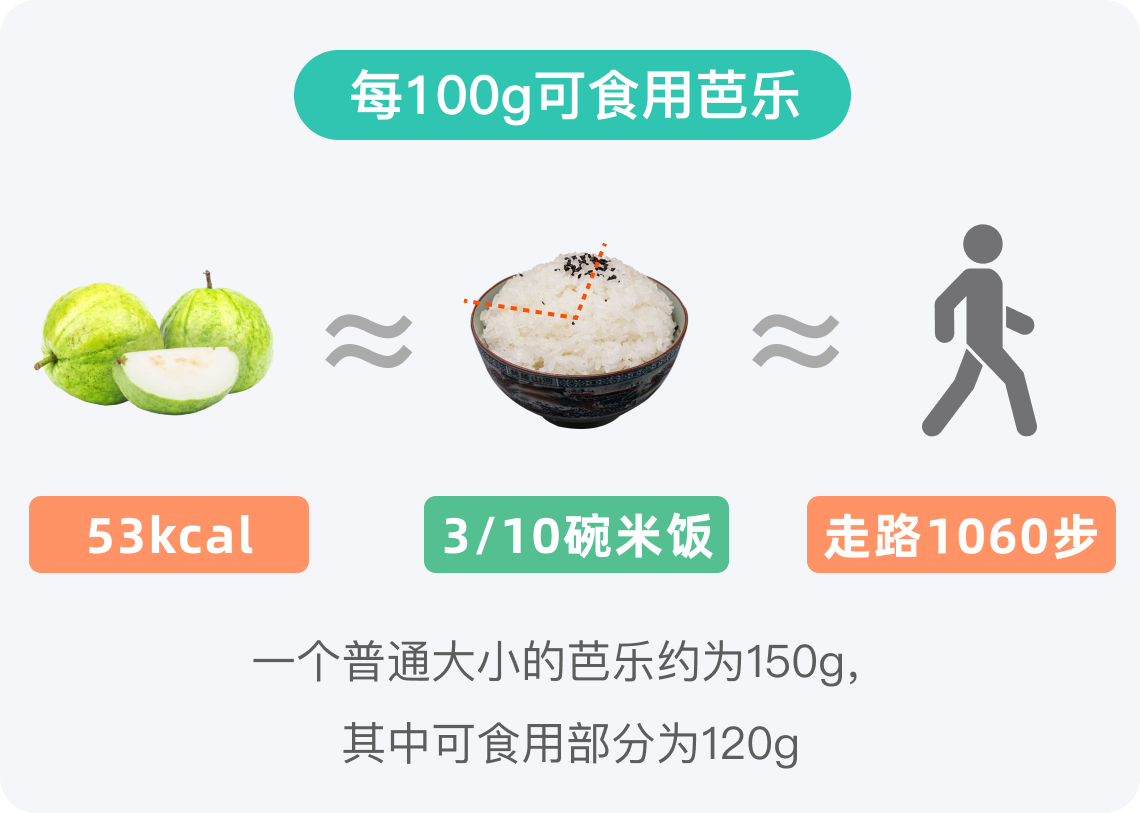 芭乐热量水平较低,一个芭乐的大小、重量与品种有很大关系,以一个普通大小、重约150g的芭乐为例,其可食用部分约为120g,热量约为64kcal,相当于1/3碗米饭的热量,这个热量水平在一餐中所占比例较低,因此芭乐作为一种低热量且营养丰富的水果,在日常饮食中可适量食用,有助于维持健康的饮食结构,但也不宜过度食用。