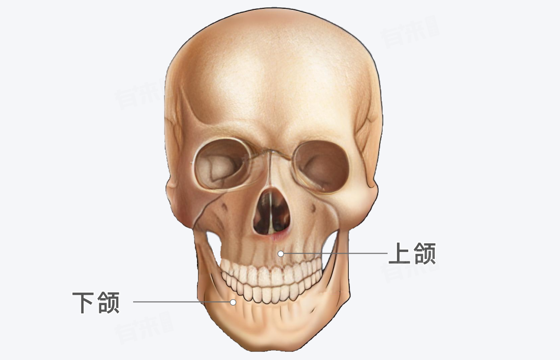 “颌”主要是指构成口腔上下部的骨骼和肌肉组织,分为上颌和下颌,分别位于面中部和下部,具有咀嚼、发音等功能。