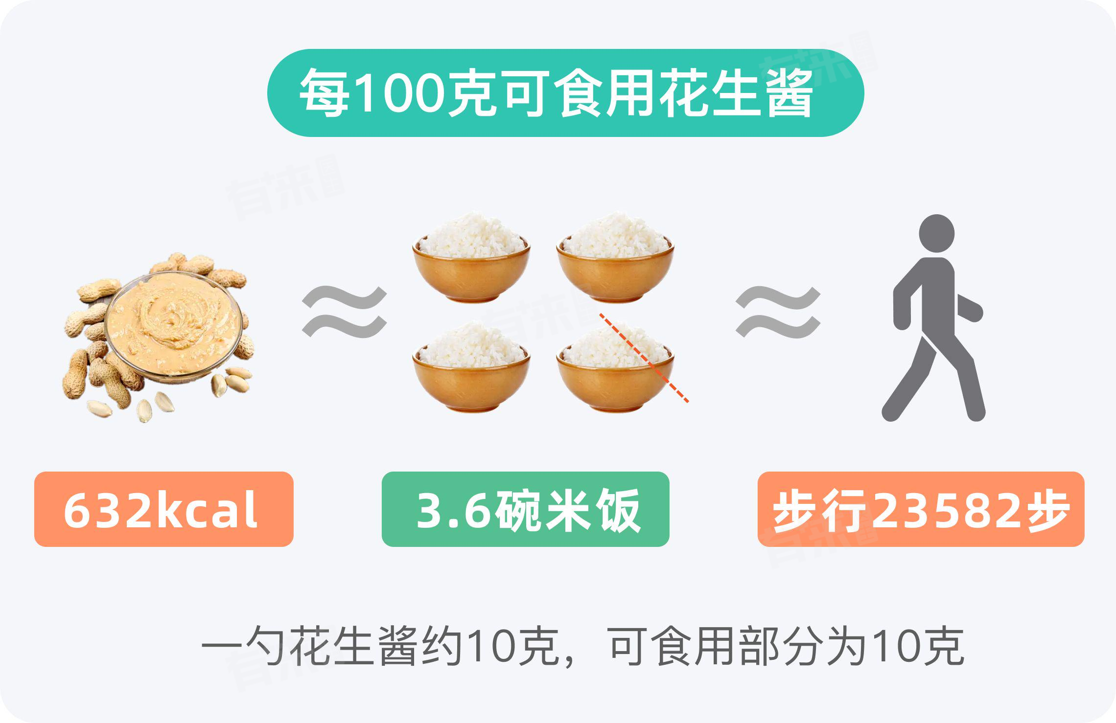 花生酱主要由花生磨制而成,含有大量的脂肪和蛋白质。100g花生酱提供632kcal的能量,需要大约慢跑137分钟才能彻底消耗掉。此数值可作为一般参考,具体因人而异。