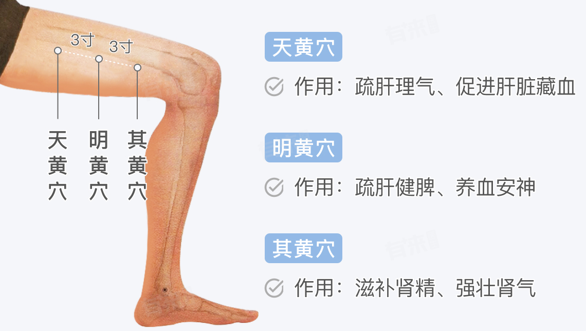 2、作用:其黄穴通过调节肝经气血,间接起到滋补肾精、强壮肾气的作用,对于肾虚所致的腰膝酸软、头晕耳鸣、性功能减退等症状有一定的改善功效。同时其黄穴还对泌尿系统疾病有一定的辅助治疗作用,如对于尿频、尿急、尿失禁等泌尿系统功能失调的情况。