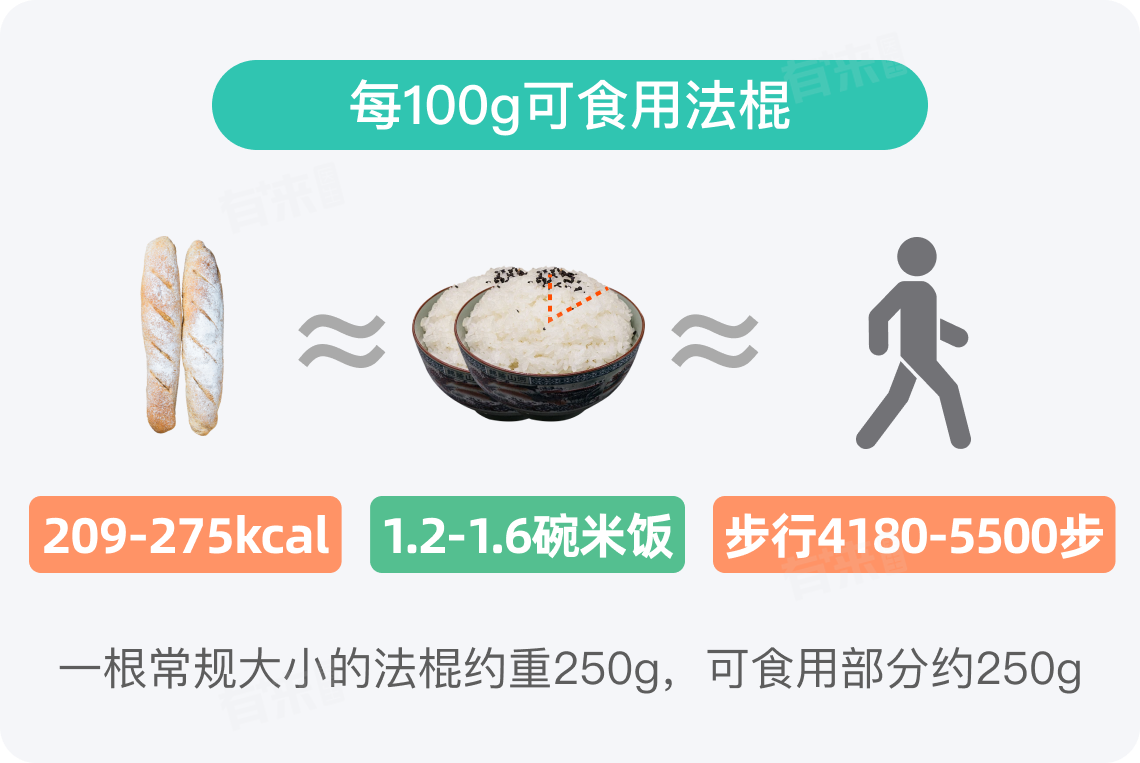 大小与重量:法棍的大小和重量直接影响其热量值。一般来说,重量越大的法棍,其热量也越高。