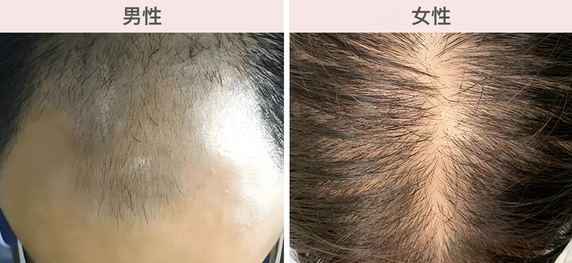 主要是头顶的头发逐渐稀疏,发际线一般没有明显后移。头发呈弥漫性、进行性地变稀变软,发缝处的头发稀疏尤为明显,会逐渐增宽。