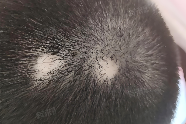 在脱发斑的边缘,可能会看到一些断发,这是斑秃的发病机制导致毛发在毛囊内折断引起的。