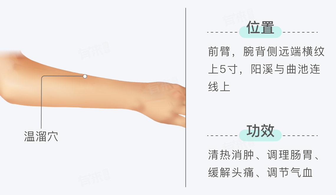 温溜穴是手阳明大肠经的郄穴,位于前臂,腕背侧远端横纹上5寸,在阳溪与曲池连线上,具有清热消肿、调理肠胃等功效,操作时应由专业中医师进行,以确保安全性。