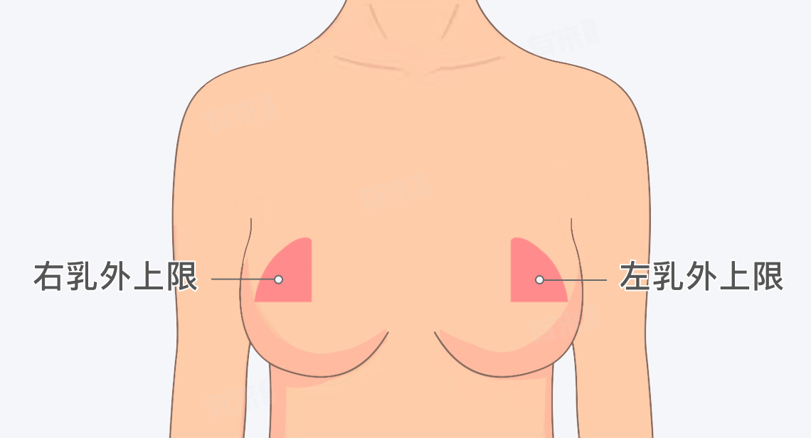 乳腺癌一般长在乳房的外上象限,即左乳的12-3点位置和右乳的9-12点位置,这两个区域被医学界认为是乳腺癌的高发区。这并不意味着乳腺癌只可能在这些位置发生,可能出现在乳房的任何部位。