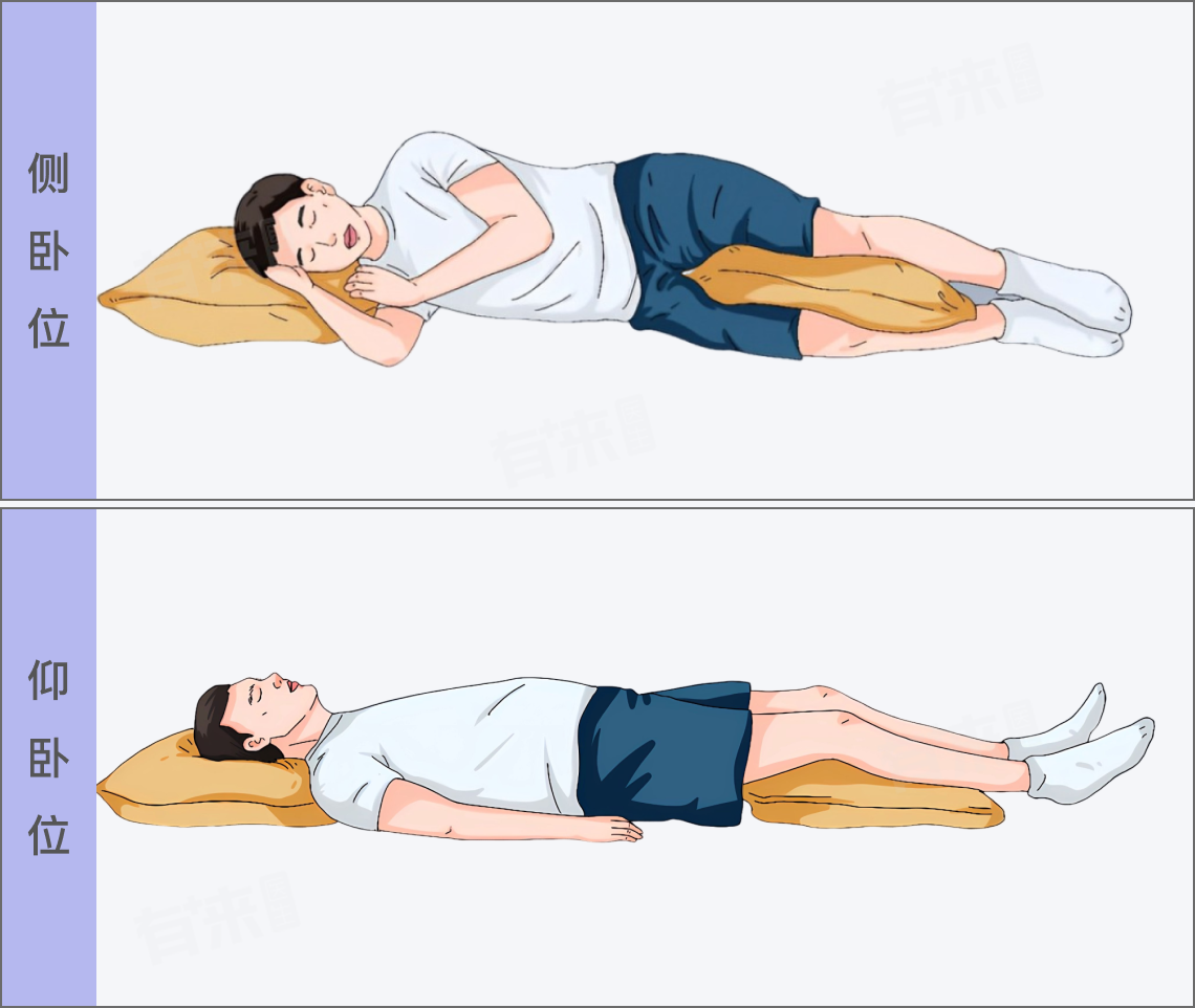 侧卧位是比较适合骨盆前倾患者的睡姿之一。在两腿之间夹一个薄枕头,使髋关节和膝关节保持在同一水平线上,这样可以防止骨盆在侧卧时出现扭转。将头部、颈部和脊柱保持在一条直线上,选择合适高度的枕头,使颈椎也能得到良好的支撑,避免颈椎侧弯,减轻脊柱整体的压力,对改善骨盆前倾也有一定的辅助作用。
