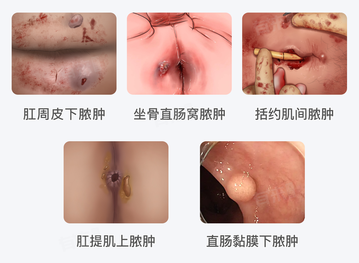 肛周脓肿是肛门周围软组织发生的急性化脓性感染,根据脓肿位置不同,症状各异,肛周皮下脓肿表现为局部红、肿、热、痛;坐骨直肠窝脓肿则患侧胀痛逐渐加重;括约肌间脓肿破溃后形成瘘管;肛提肌上脓肿破溃后脓液流出;直肠黏膜下脓肿则直肠黏膜脓腔形成,出现时应引起重视。