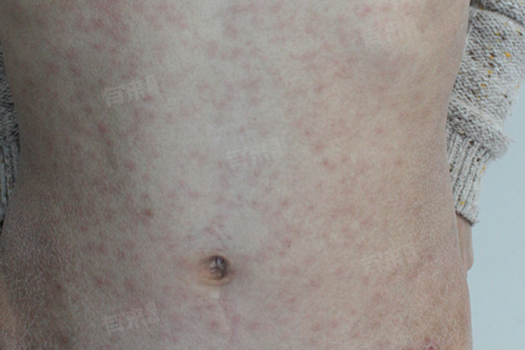 部分患者还可能出现皮疹。皮疹通常为红色或紫红色的斑丘疹,一般不痒或轻微瘙痒,可能分布在身体的各个部位,如面部、胸部、背部、四肢等。