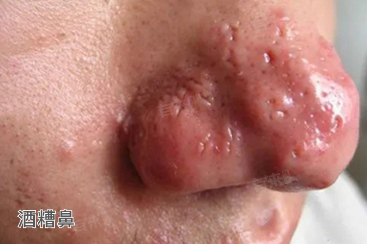 酒糟鼻是一种主要发生于面部中央,尤其是鼻部及其周围区域的慢性炎症性皮肤病,其典型症状包括鼻部红斑、毛细血管扩张、丘疹、脓疱、鼻部肥大及鼻赘形成,常伴随皮肤干燥瘙痒和眼部症状。