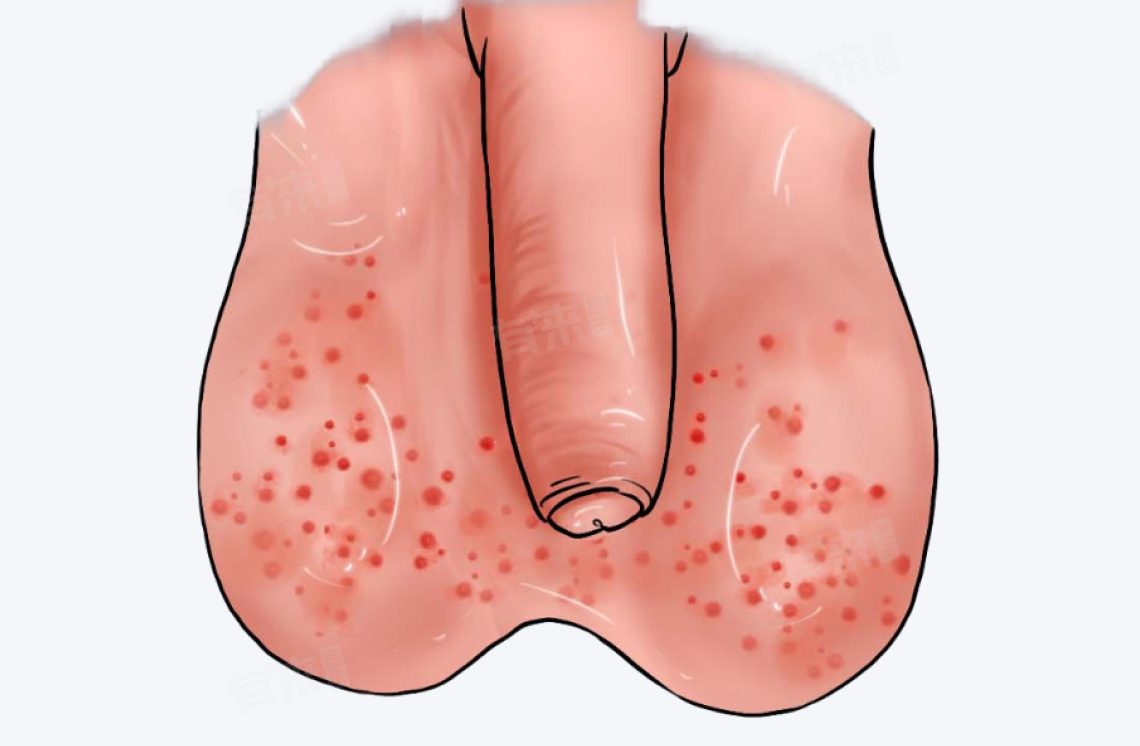 由于阴虱的叮咬和唾液注入,局部皮肤会出现红疹,表现为红色小斑点或丘疹。这些红疹可能伴有剧烈的瘙痒感,并可能逐渐扩大或融合成片。
