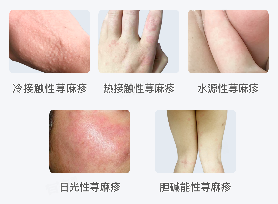 过敏性荨麻疹的症状主要表现为瘙痒性红斑或风团,根据病因不同可分为冷接触性荨麻疹、热接触性荨麻疹、水源性荨麻疹、日光性荨麻疹、胆碱能性荨麻疹等。