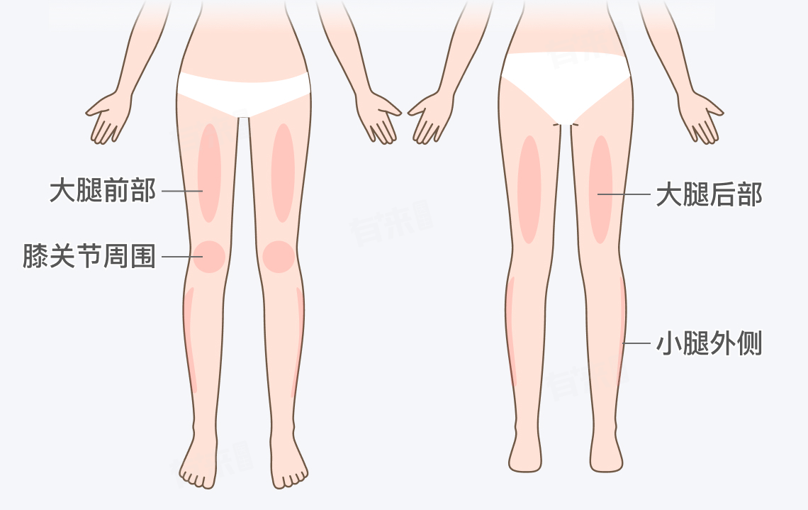 宫颈癌引起的腿疼并非特定症状,由于肿瘤的压迫、转移或浸润相关神经及周围组织的不同,其表现和位置有个体差异,可以出现在大腿前部、大腿后部、小腿外侧、膝关节周围。