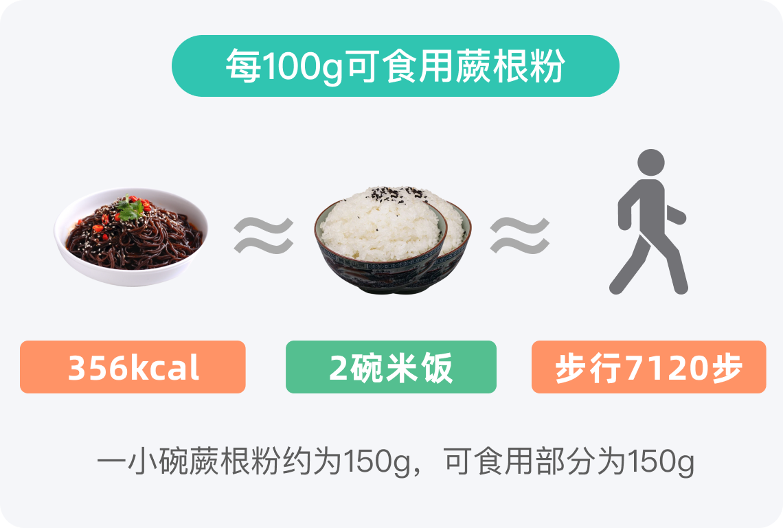 一小碗蕨根粉约为150g,其总热量约为534kcal,大约相当于3.1碗熟米饭的热量。对于部分成年人,一餐热量需求约为500-800kcal,而一小碗蕨根粉的热量正好满足一餐所需能量,故可以作为日常的主食摄入。