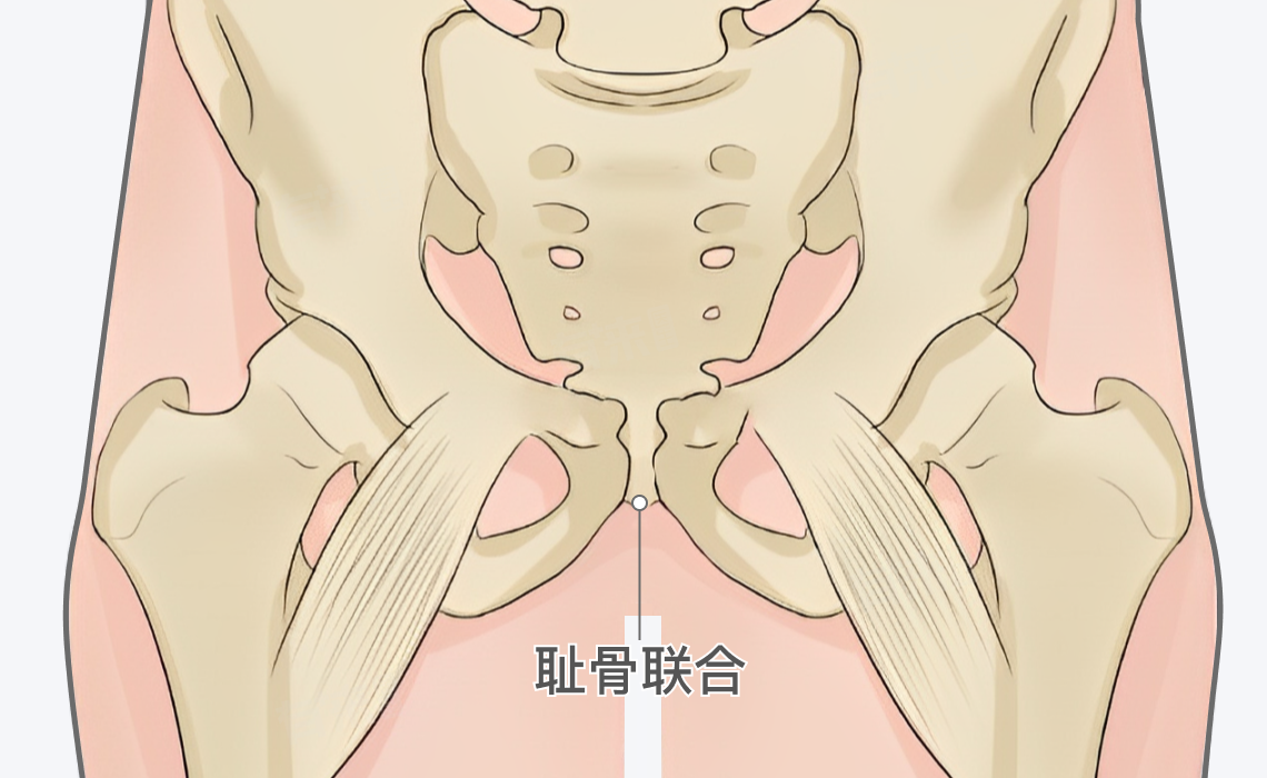 耻骨联合是由左右两块髋骨的耻骨在骨盆前正中线上以耻骨间盘连接形成,位于腹部最低部分的中间,外生殖器的上面,具有稳定骨盆、保护生殖器官、助力分娩及参与运动传导的生理功能。