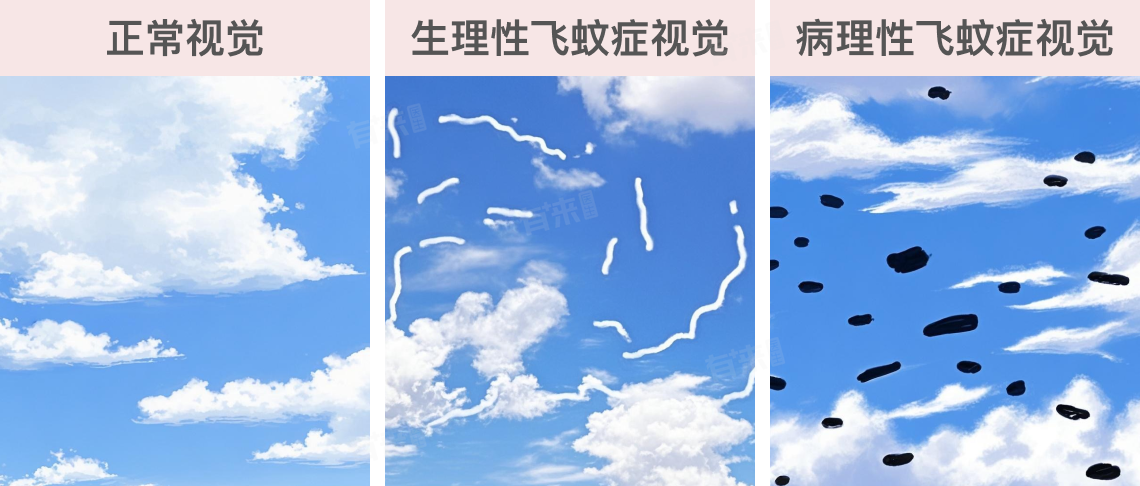 飞蚊症,医学上称为“玻璃体混浊”或“玻璃体浮游物”,根据病因可分为生理性飞蚊症和病理性飞蚊症,生理性飞蚊症可见相对较少的黑影,且视力基本不受影响;病理性飞蚊症可见黑影数量突然增多、形态复杂,视力下降明显等。