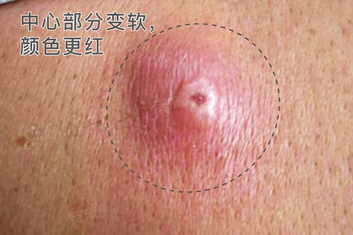 随着病情发展,硬结会逐渐变大,直径可达1-2厘米,中心部分会变软,颜色变得更红,周围的皮肤会随之发红、肿胀。此时疼痛会加剧,尤其在触碰或者受到压迫时,疼痛比较明显。