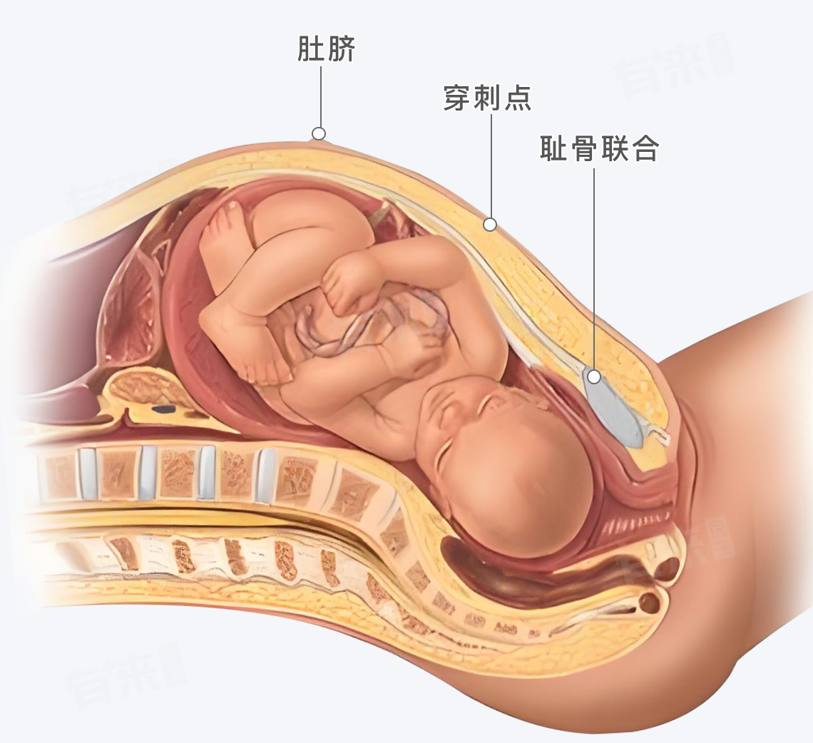 也会根据超声波检查的结果,选择子宫底下方2-3横指处的中线,或两侧囊性感明显的部位作为穿刺点。