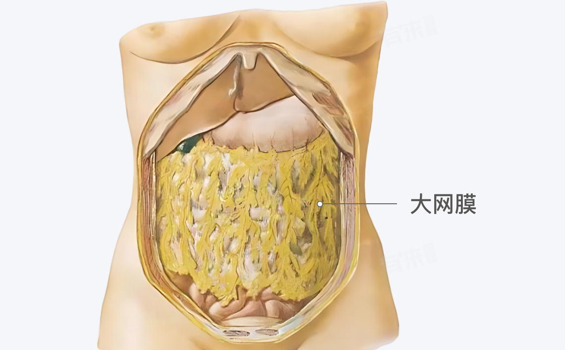 大网膜位于人体腹部,是连于胃大弯与横结肠之间的围裙样腹膜结构,具有保护作用、免疫作用、修复作用、连接和固定作用等。