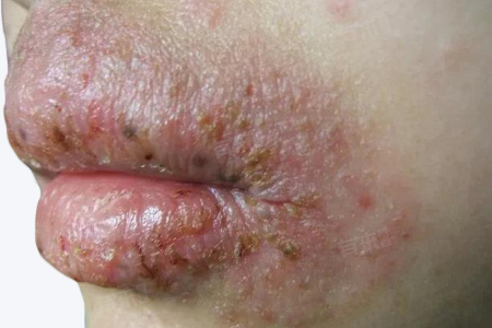 主要表现为唇部出现水肿症状,局部出现成簇而密集的小水疱,疱破后出现糜烂、溃疡,唇部充血,色深红。甚至唇部黏膜可能出现增厚现象,自觉唇部干燥不适,有时伴有剧烈瘙痒。