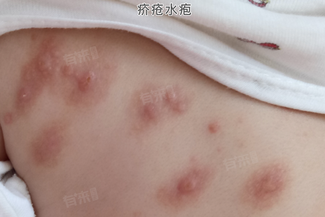 水疱大小不一,小的如针尖般,大的接近黄豆大小,疱壁较薄,疱液清亮透明,水疱同样多分布在上述皮肤薄嫩处,与丘疹相伴而生,有的水疱会因为摩擦等原因发生破裂,流出清亮液体后形成浅在的糜烂面。