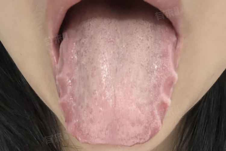 舌体颜色缺乏血色,呈淡白色,舌体稍胖,周围还有齿痕。