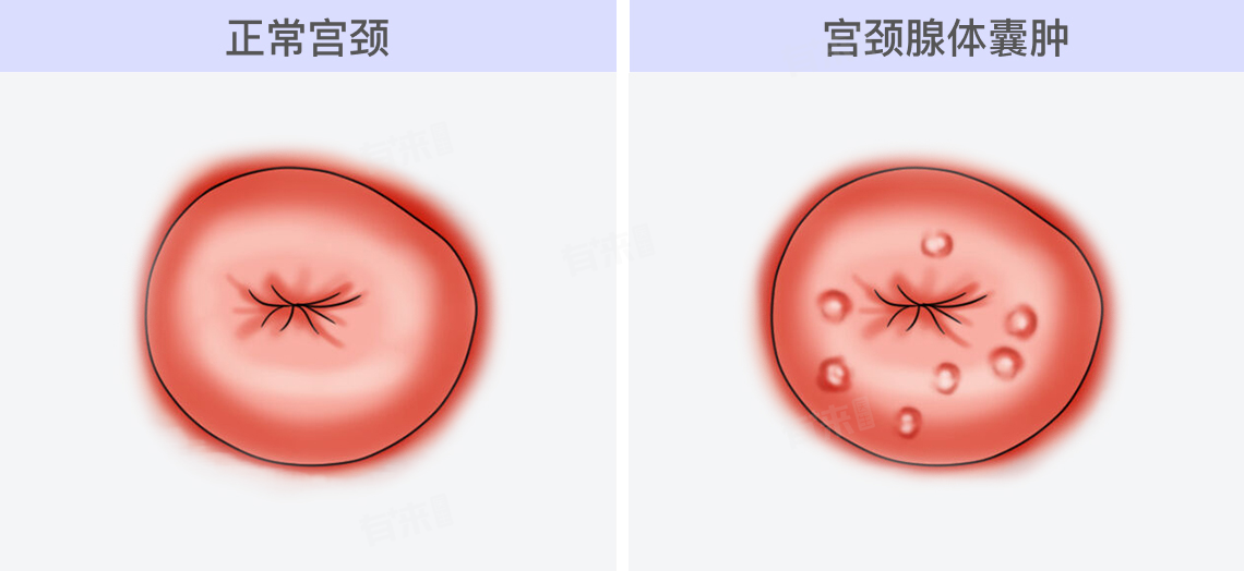 通过妇科检查可发现宫颈表面有单个或多个青白色小囊泡,大小不一,一般直径在数毫米至数厘米之间,略突出于宫颈表面,内含无色黏液。
