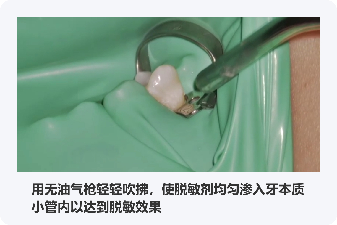 2、干燥牙齿:清洗完牙齿后,需要将牙齿表面吹干,确保牙齿处于干燥状态,有助于脱敏剂更好地附着在牙齿上。