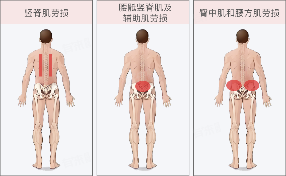 腰肌劳损的位置常见于腰部两侧的竖脊肌,还有腰骶部肌肉以及髂嵴上方肌肉,这些部位可出现疼痛(酸痛和胀痛)以及压痛,而且反复发作,检查未发现器质性疾病。
