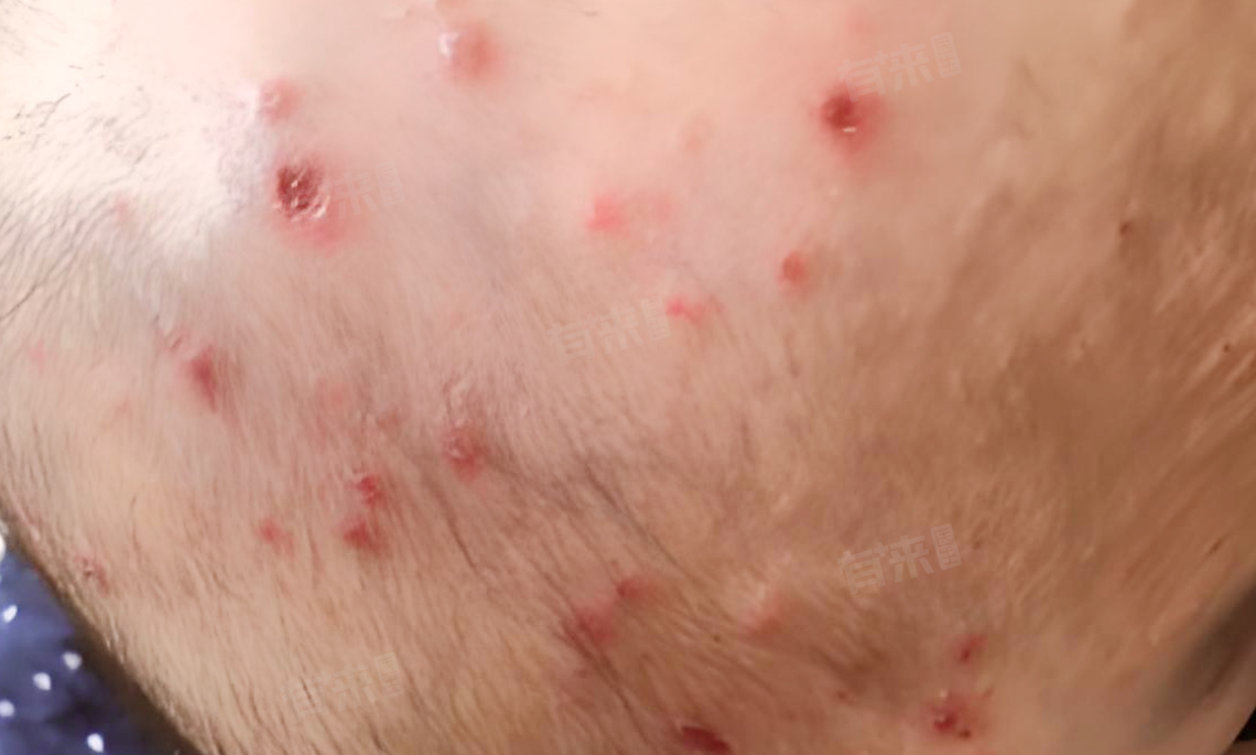 3、形态多样:皮疹最初为红色斑疹,数小时后变为丘疹,丘疹再发展为清亮、椭圆形的疱疹,疱疹壁薄易破。疱疹大小不一,直径大约为3-5mm,疱液初为透明,后可稍变混浊。周围有红晕,疱间皮肤正常。