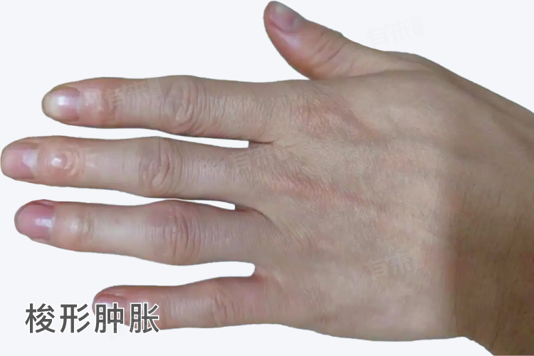 3、关节肿胀:手指关节周围软组织出现肿胀,多为梭形肿胀,即关节两端相对较细,中间肿胀明显,外观类似纺锤状。肿胀是由于关节腔内积液、滑膜增生以及周围组织炎症反应所致,按压肿胀部位时可有疼痛感。