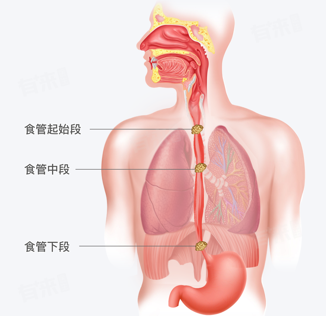 这个部位发生食管癌的几率仅次于中段,约占所有食管癌的30%。