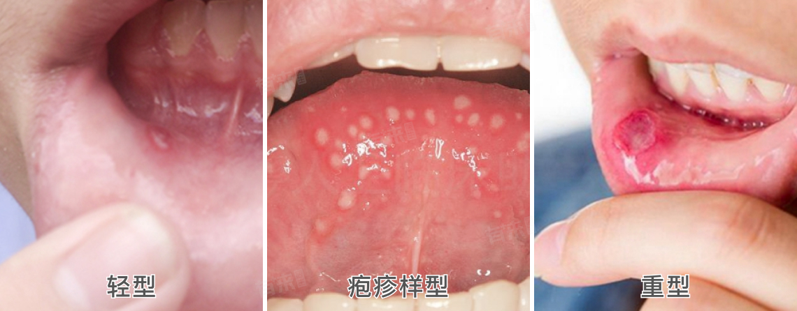 复发性阿弗他溃疡,是一种周期性反复发作的口腔黏膜疾病,其症状根据溃疡的严重程度,主要分为轻型、疱疹样型和重型,轻型表现为较小的溃疡,疱疹样型的溃疡数目多,而重型溃疡大而深,患者应根据自身症状及时就医并接受专业治疗。