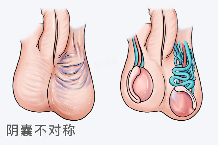 2、精索形态改变:通过触摸阴囊,可以感觉到精索变得增粗。正常精索质地相对较软,在发生精索静脉曲张后,精索会因为静脉的扩张和血液淤积而变硬,如同在精索部位摸到一些条索状的结构。在严重的情况下,整个精索可能会明显肿胀,这种肿胀在外观上可能会使阴囊出现不对称,患侧阴囊比对侧阴囊更大、更低垂。