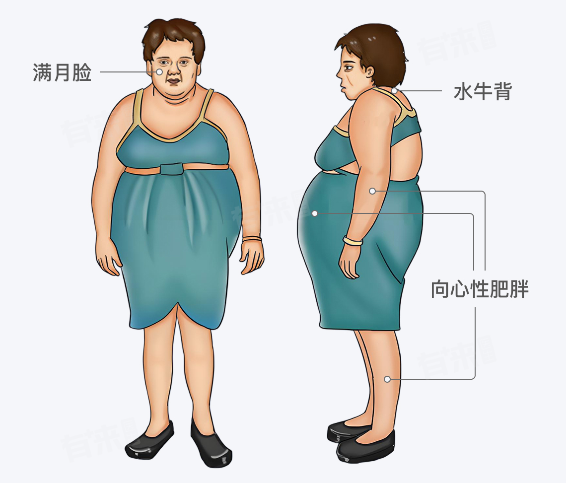 患者的脂肪会重新分布,主要堆积在躯干部位,如腹部、胸部,呈现出满月脸(脸部圆润、饱满,像满月一样)、水牛背(背部脂肪增厚,脊柱处形成一个类似水牛背的隆起)的特征,而四肢的脂肪相对减少,显得较为纤细。