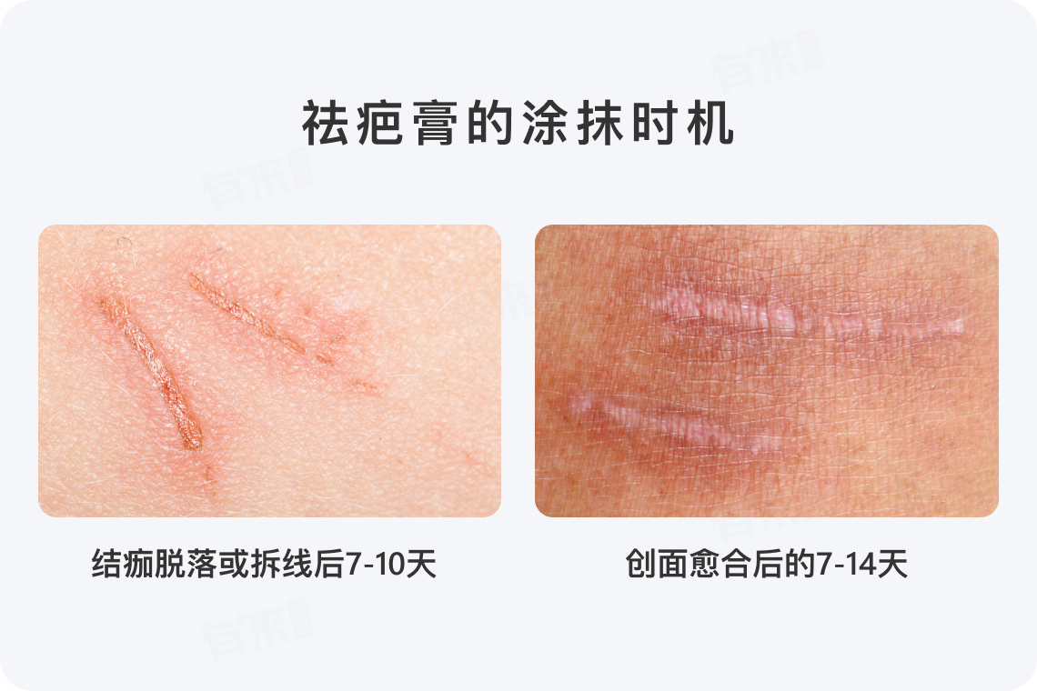 一般情况下,手术或外伤后的疤痕需要在结痂完全脱落,或拆线后的7-10天开始使用祛疤膏。此时,伤口已经基本愈合,使用祛疤膏可以促进局部恢复,减少疤痕形成。如果伤口在结痂脱落后仍有鲜红的嫩肉长出,或者表面有糜烂、渗出等情况,应暂缓使用祛疤膏,待伤口愈合良好后再行涂抹。